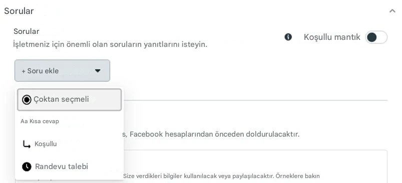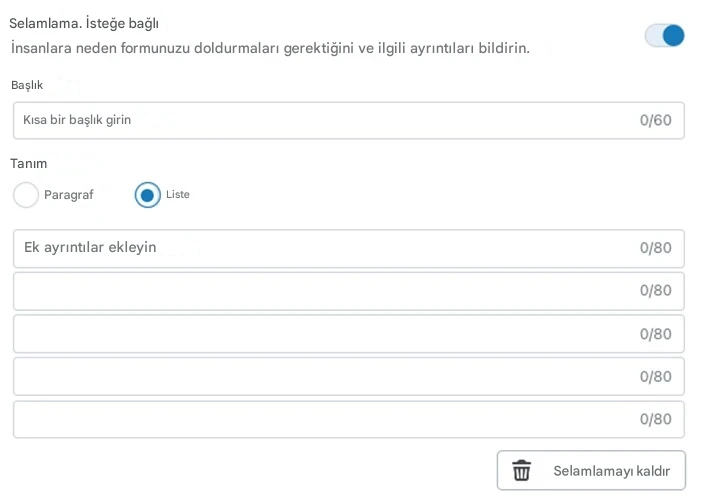 - Burada ön eleme yapacak bilgiler verebilirsiniz: Örneğin, “Bu form, sadece İstanbul’daki işletmeler için geçerlidir” gibi.